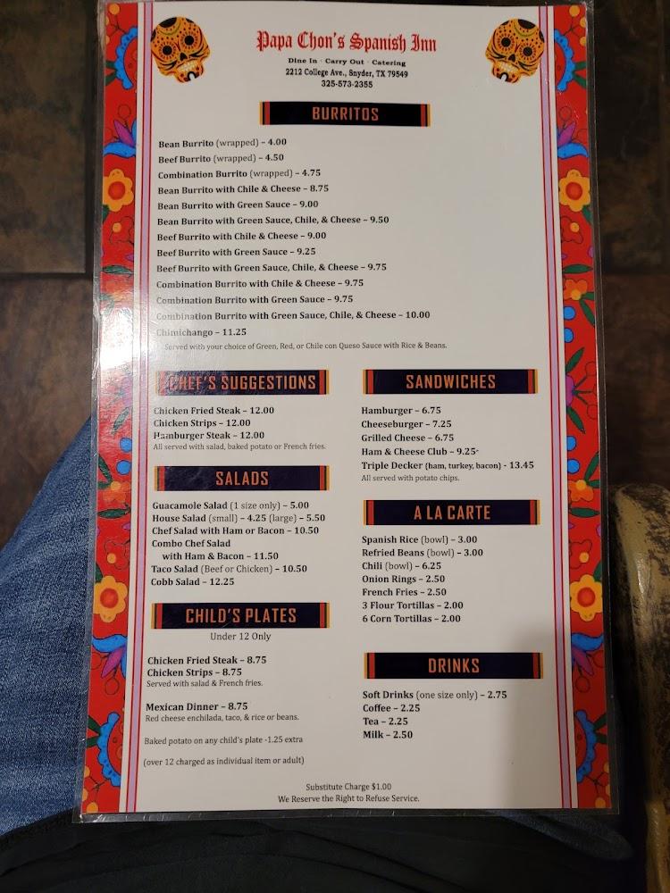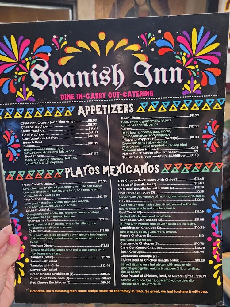 Spanish Inn presents a diverse menu of Mexican delights and Tex-Mex fare. With 90 dishes, diners have plenty to choose from, including appetizers, salads, and child-friendly plates.