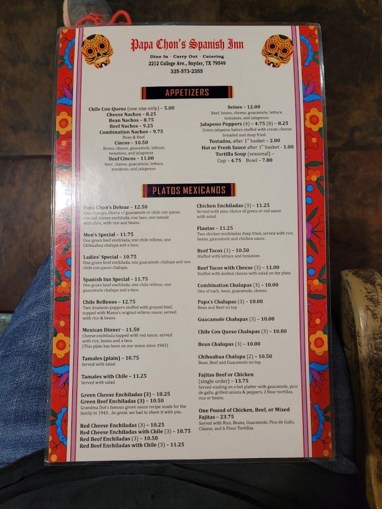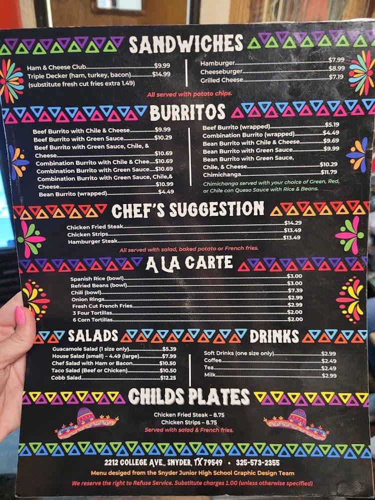 Welcome to Spanish Inn, your go-to destination for authentic Mexican cuisine in Snyder, TX. Conveniently located at 2212 College Ave, we offer a diverse menu featuring local specialties and a wide selection of beers. Enjoy our relaxing atmosphere, perfect for solo diners, families, or groups. We provide takeout, delivery, and dine-in services with quick and friendly service. Our restaurant is wheelchair accessible for a hassle-free experience. Join us for lunch or dinner and indulge in our delicious offerings, including small shareable plates, refreshing cocktails, and delightful desserts. Reservations are welcome!